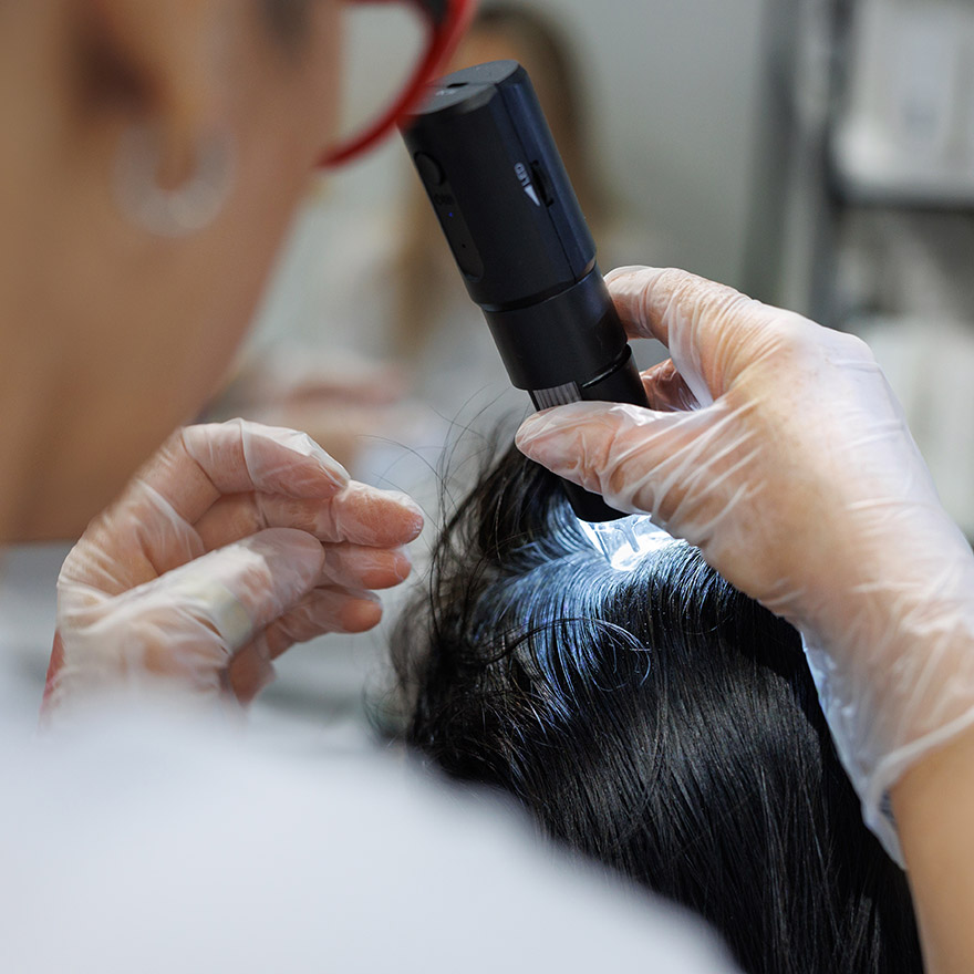 A biópsia de couro cabeludo consiste na remoção de uma pequena amostra da pele para análise anátomo-patológica. É indicada em quedas de causa indefinida, suspeita de alopecias cicatriciais ou quando tratamentos prévios não foram eficazes. O exame é minimamente invasivo, realizado com anestesia local, e fornece informações valiosas para diagnóstico preciso. Pode identificar doenças não detectáveis clinicamente ou por dermatoscopia, permitindo definir a causa do problema capilar e orientar um plano terapêutico mais eficaz e direcionado.